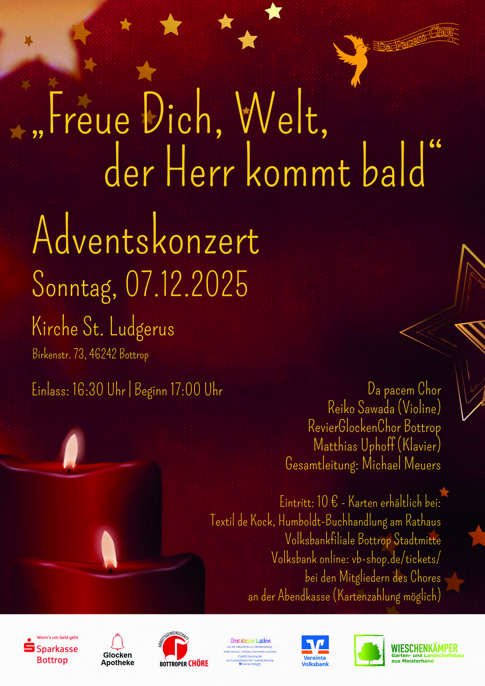 Am 7.12.2025 um 17 Uhr findet unser alljährliches Adventskonzert in der Ludgeruskirche statt.